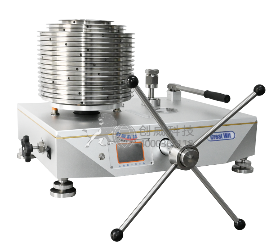 CW系列液體活塞式壓力計可作為基準壓力儀器和標準壓力儀器使用。活塞式壓力計是我國各級計量測試所、工業企業壓力計量部門建立壓力標準的重要計量器具,可用于量值傳遞,檢定數字壓力計、精密壓力表、壓力變送器等。符合JJG59-2022《活塞式壓力計》、JJG99-2006《砝碼》國家計量檢定規程。