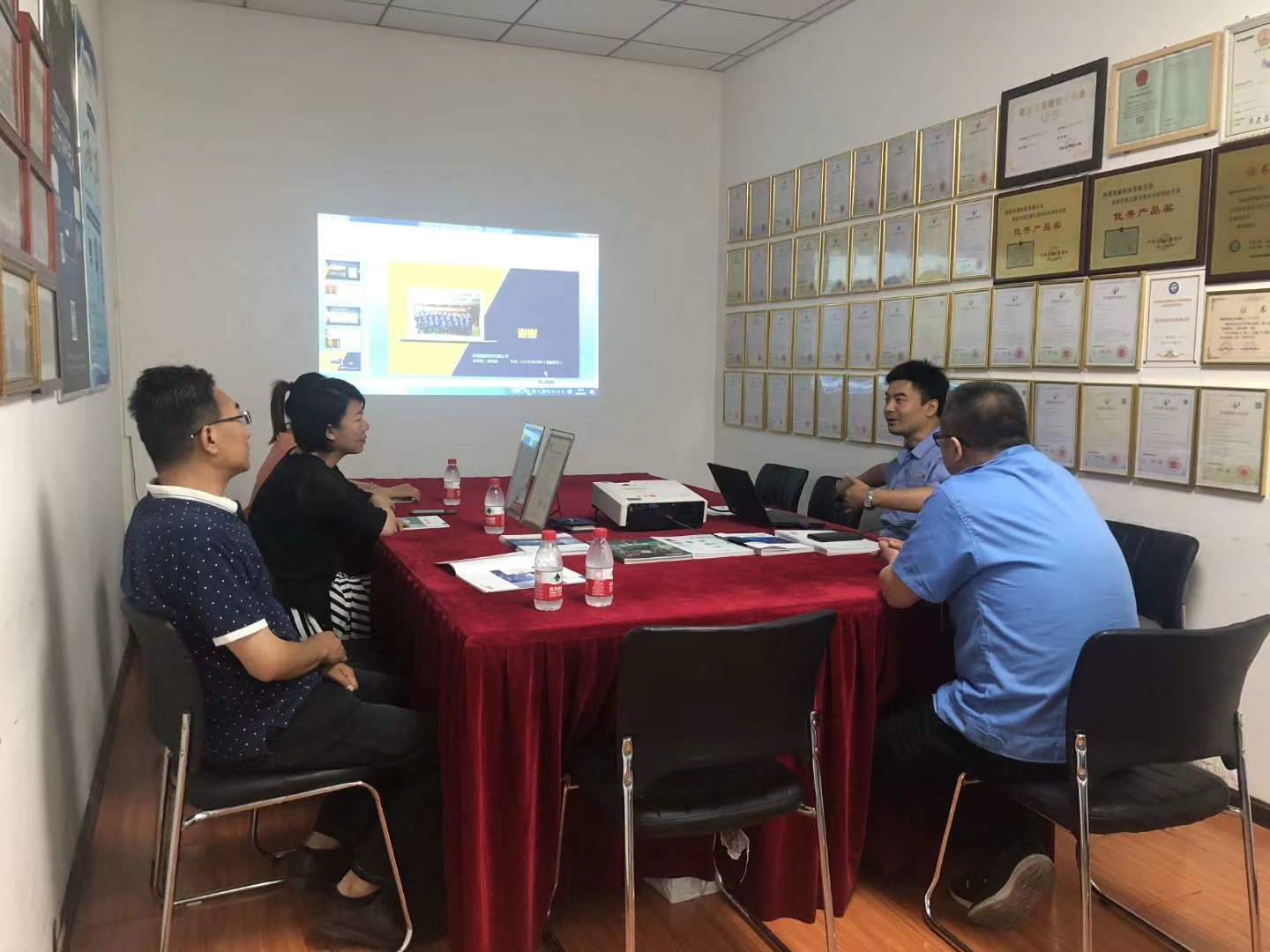 7月8日,某質檢所一行三人蒞臨創威指導,半年為界,吳總經理和郝副總對于創威公司上半年的發展和取得一些相關成績做了簡單的介紹,同時,技術人員在設備展區講解了全自動活塞式壓力計的工作原理,也做了實際的操作演示。