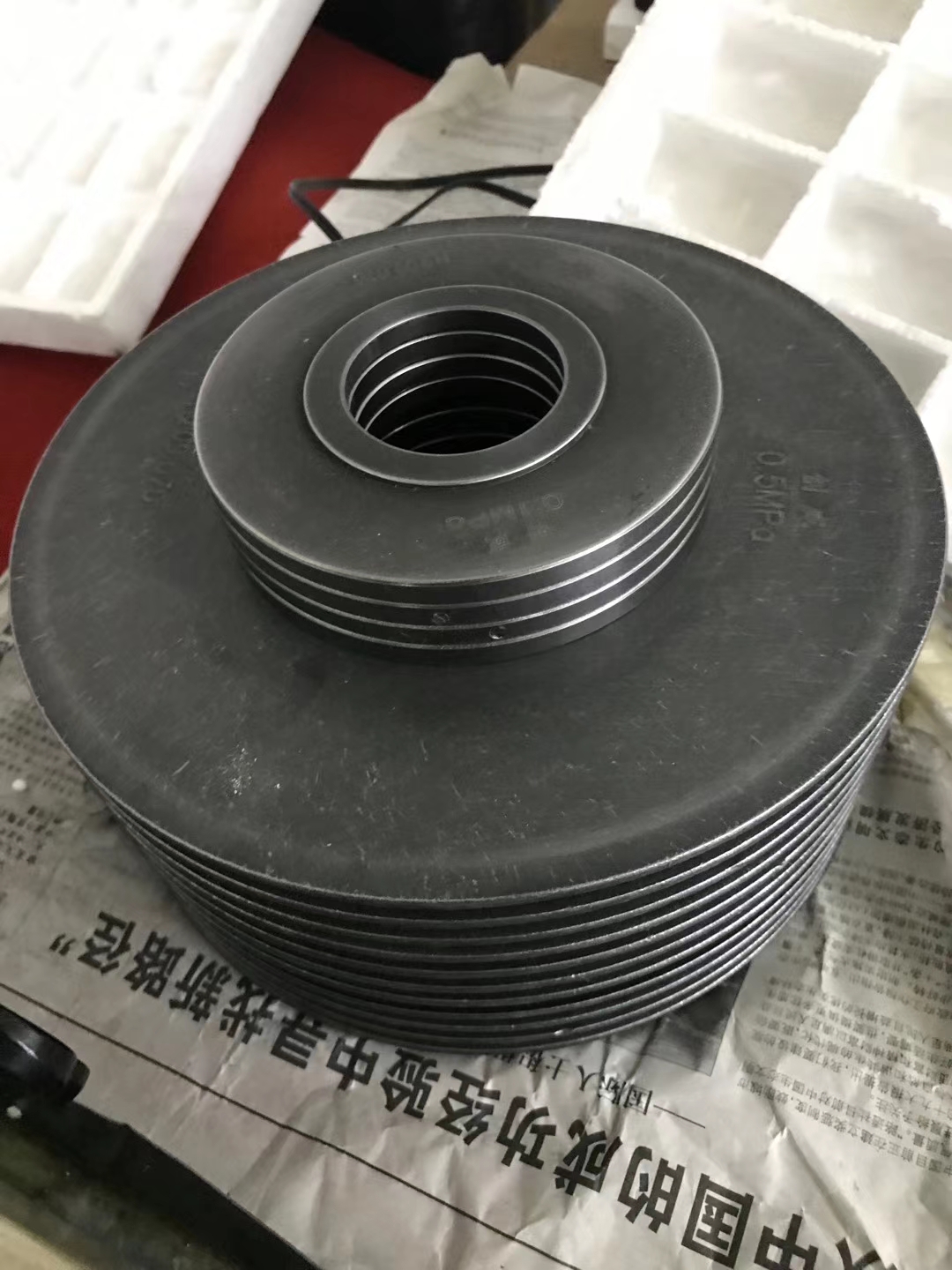銷售人員走訪客戶,維護創威第一代活塞式壓力計,2009年的設備目前還能正常使用。
