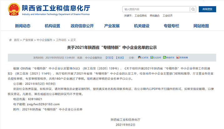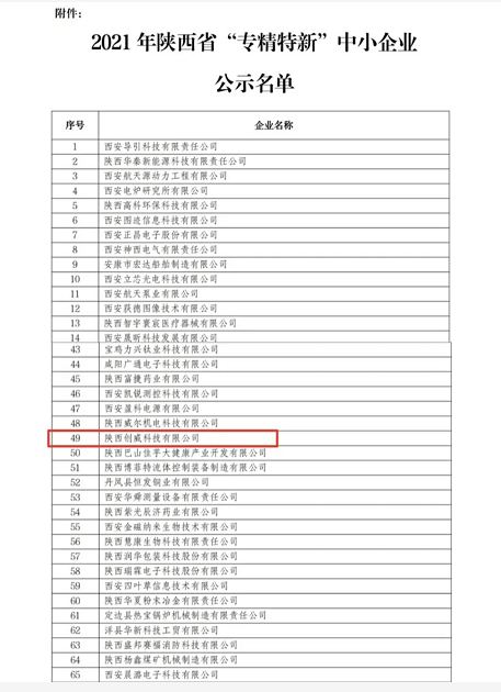 近日,創威通過了省工信廳的相關審核及網站公示,成功獲得2021年省級“專精特新”中小企業的認定。