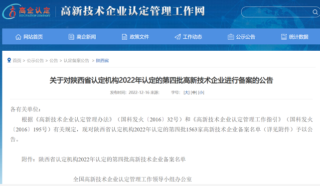 12月,入選國家級“高新技術企業”(證書編號:G R202261003689)